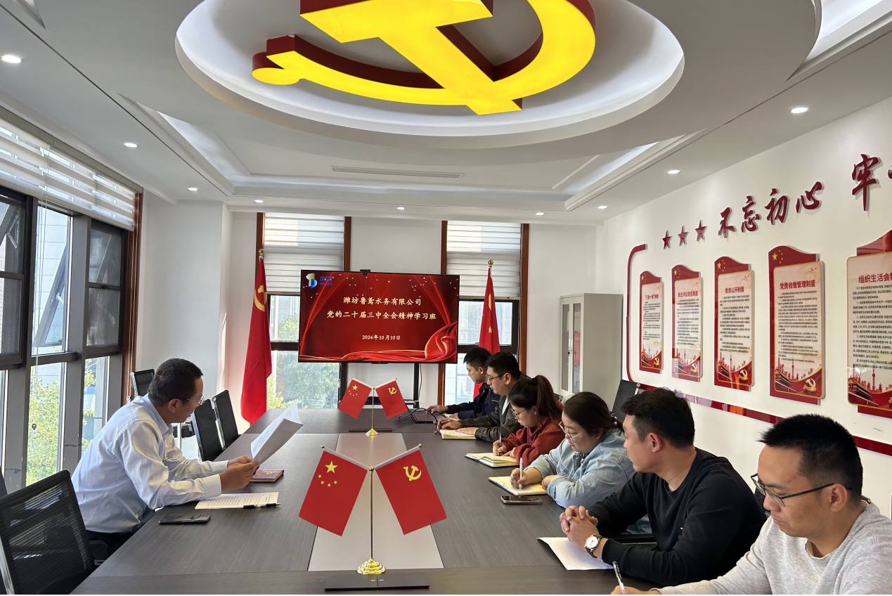 濰坊魯鳶水務(wù)有限公司黨支部組織多種形式學(xué)習(xí)傳達黨的二十屆三中全會精神,迅速掀起學(xué)習(xí)貫徹全會精神熱潮。通過集中領(lǐng)學(xué)、個人自學(xué)、交流研討等形式,全面認真學(xué)習(xí)了習(xí)近平總書記重要講話、中央《決定》及全會《公報》,并圍繞企業(yè)改革、企業(yè)高質(zhì)量發(fā)展等主題開展深入研討交流。