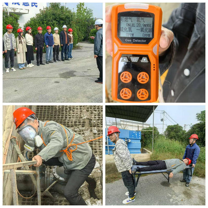南陵水務組織有限空間作業(yè)救援應急演練活動。演練開始前,公司組織全體員工進行了有限空間作業(yè)安全知識培訓,并進行演練前準備工作,嚴格執(zhí)行“先通風、再檢測、后作業(yè)”的安全生產原則。