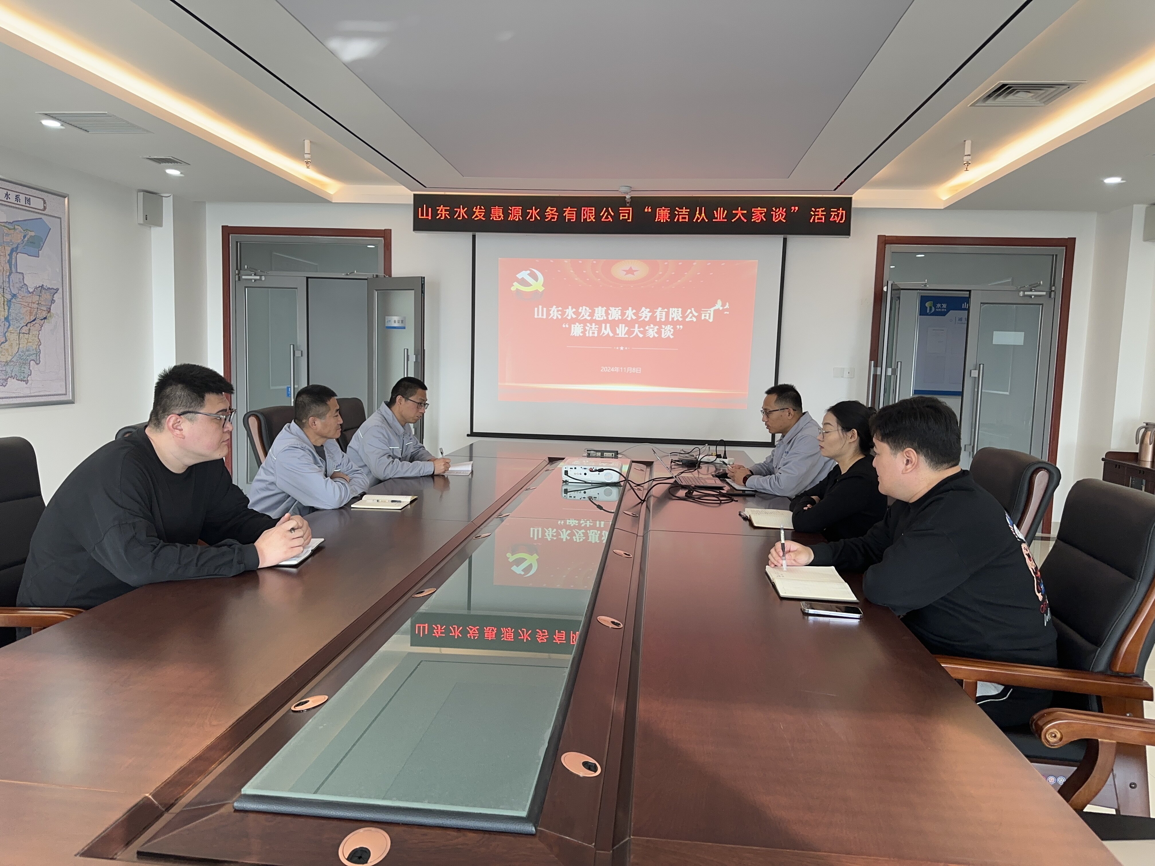 惠源水務(wù)組織開展以“強化廉潔意識 共筑清風(fēng)正氣”為主題的“廉潔從業(yè)大家談”活動。大家精心準(zhǔn)備發(fā)言材料,有的從思想根源出發(fā),談如何堅守理想信念,做到對黨忠誠;有的結(jié)合黨紀(jì)學(xué)習(xí)教育,闡述推進(jìn)廉潔教育走深走實,把紀(jì)律規(guī)矩落實到崗位工作中;有的從典型案例出發(fā),談感想談?wù)J識,作出廉潔從業(yè)承諾;有的結(jié)合崗位職責(zé),深入查擺廉潔風(fēng)險點,提出防范措施和建議……圍繞國有企業(yè)干部職工如何做到“廉潔從業(yè)”開展了深入的探討交流。