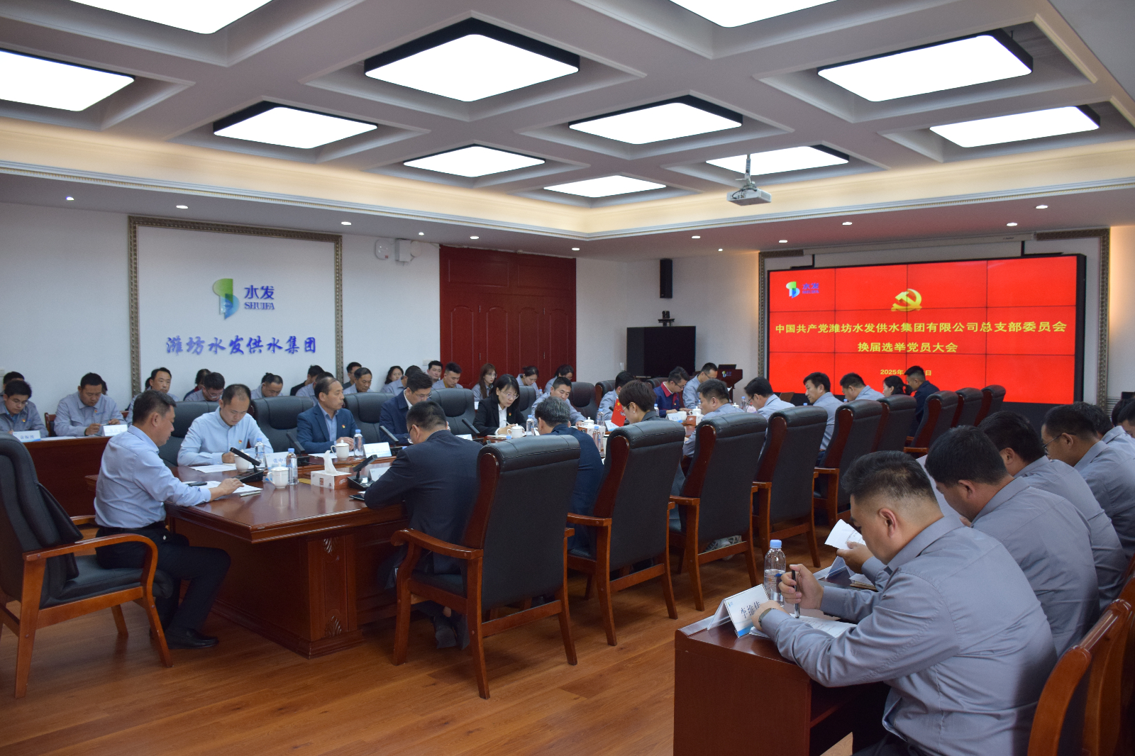 4月18日,中國共產(chǎn)黨濰坊水發(fā)供水集團(tuán)有限公司總支部委員會(huì)換屆選舉黨員大會(huì)在供水集團(tuán)隆重召開,供水集團(tuán)黨總支班子成員、黨員59人出席大會(huì),水控集團(tuán)黨委委派專人到會(huì)指導(dǎo)。